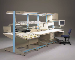• Super structure can be built with Over head cabinet, Light, Monitor holder, Trays, Shelves, Peg boards , Power bars & Bin holders